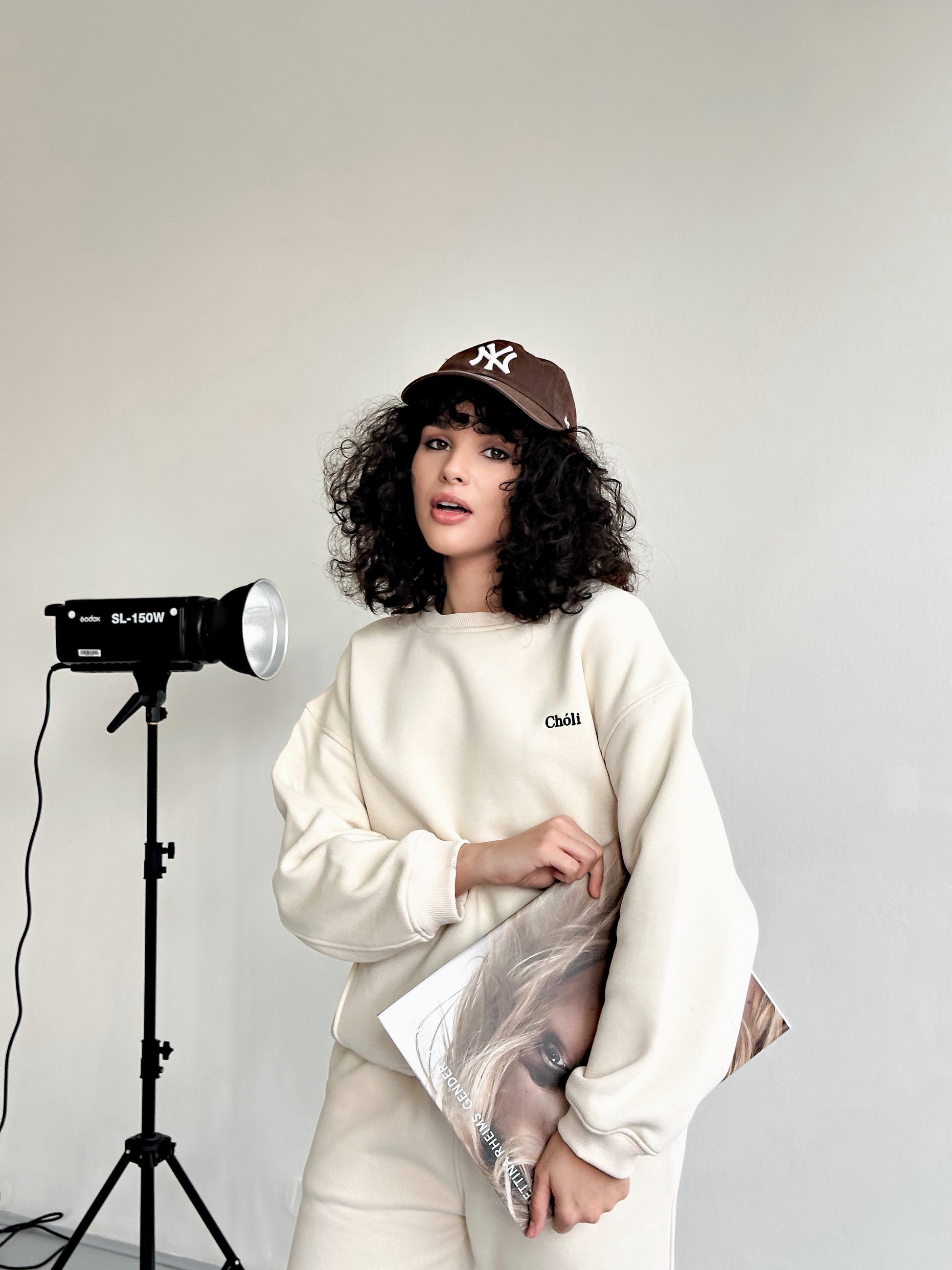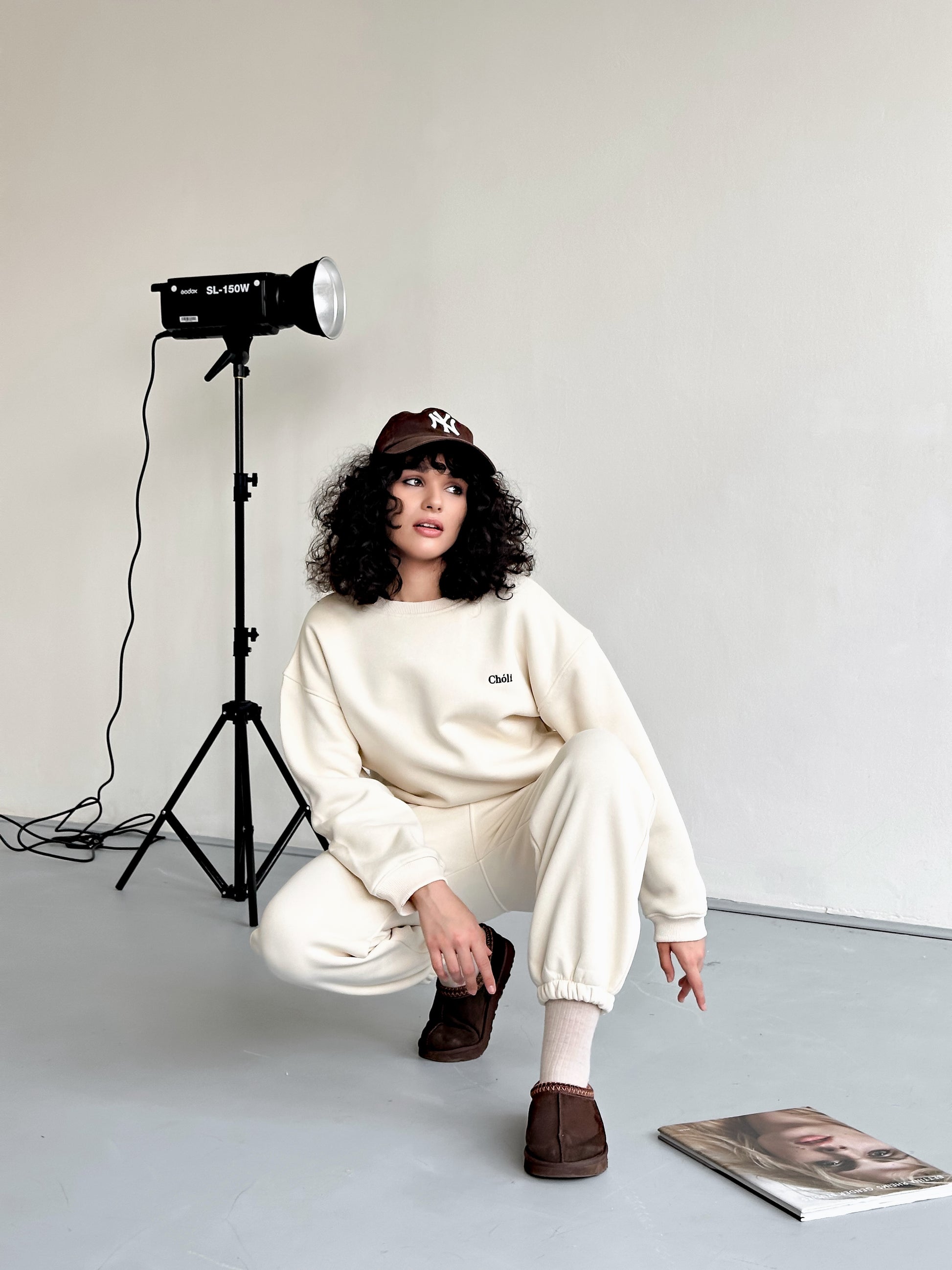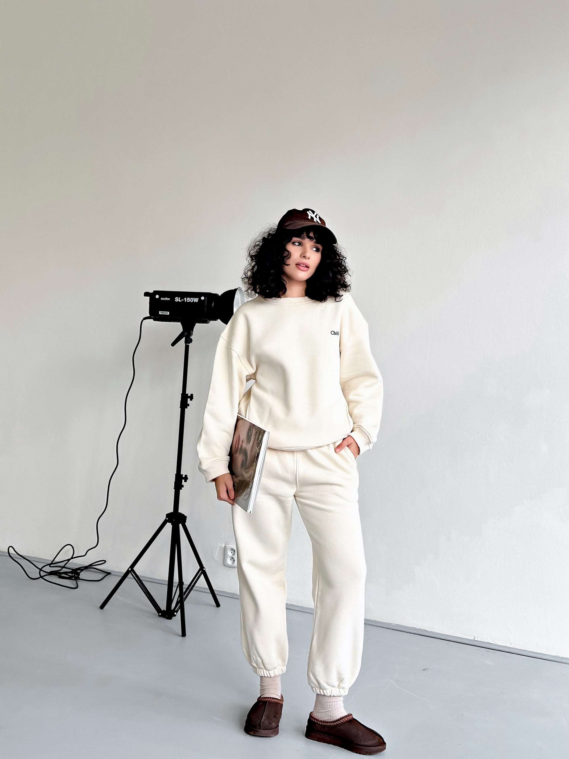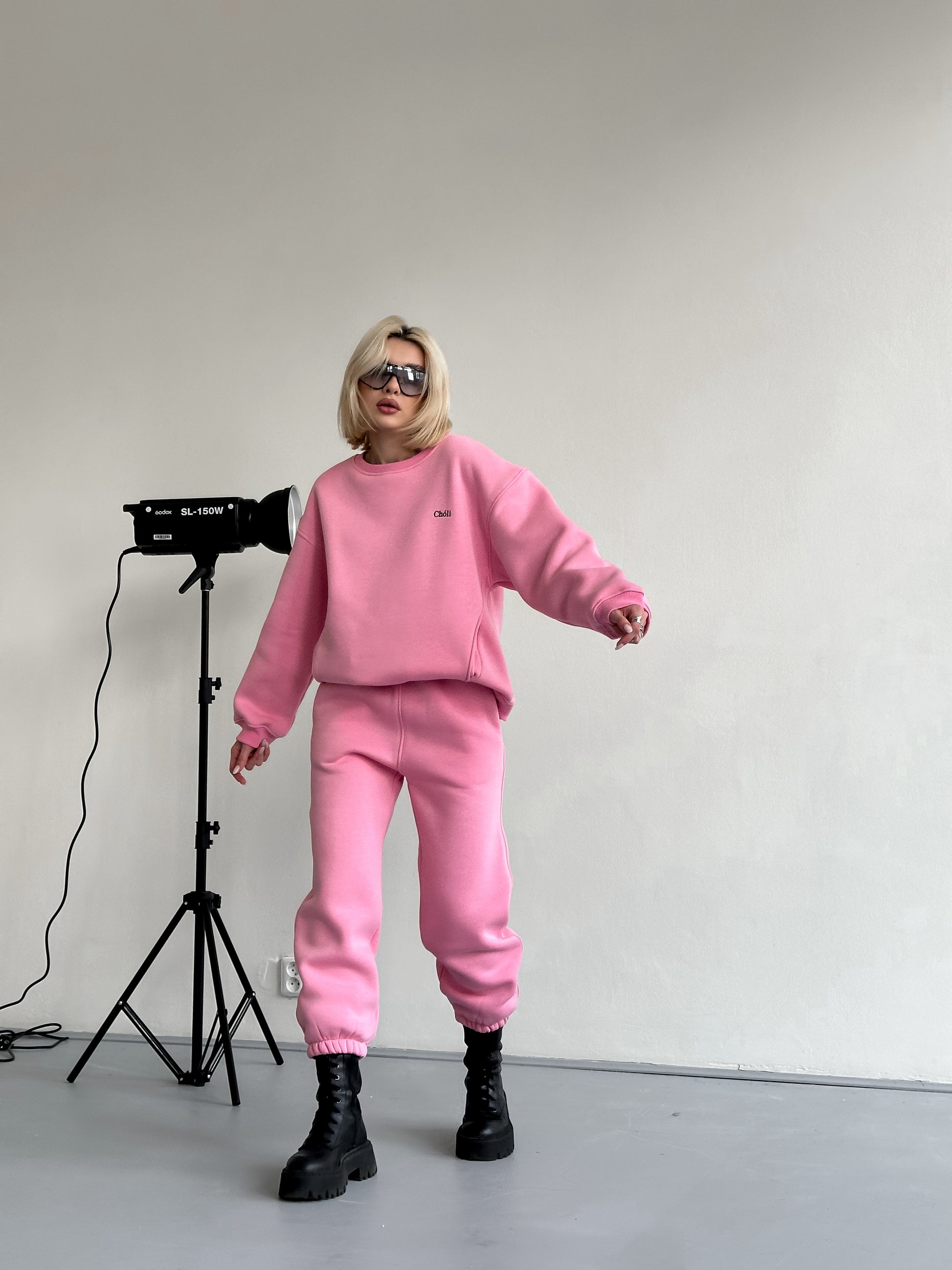 Tepláková souprava zateplená fleecem s žerzejem, střih mikiny oversize, tepláky jogger.