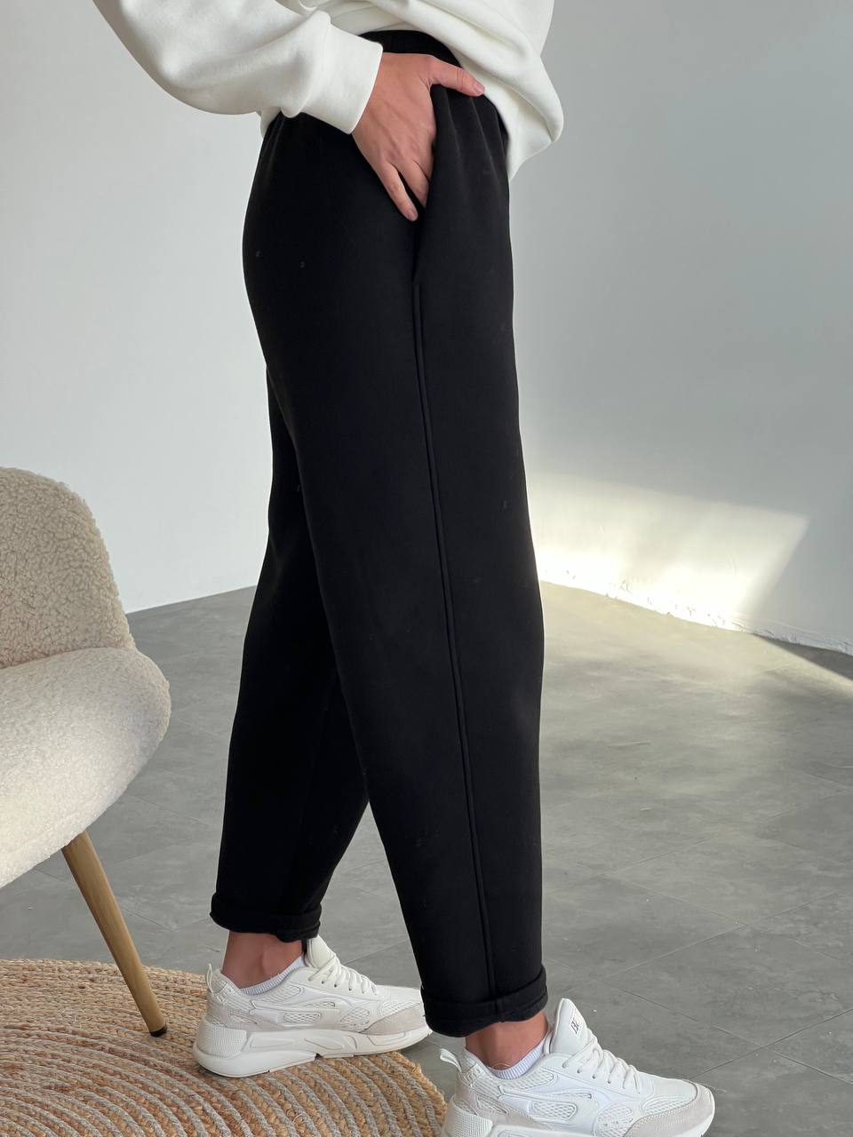 - Kalhoty - boční kapsy, vysoký sed, oversized střih
