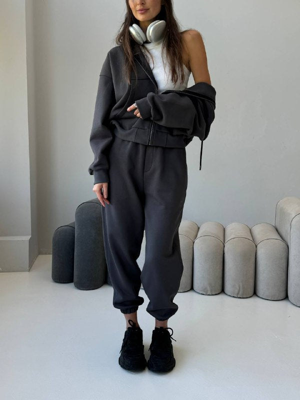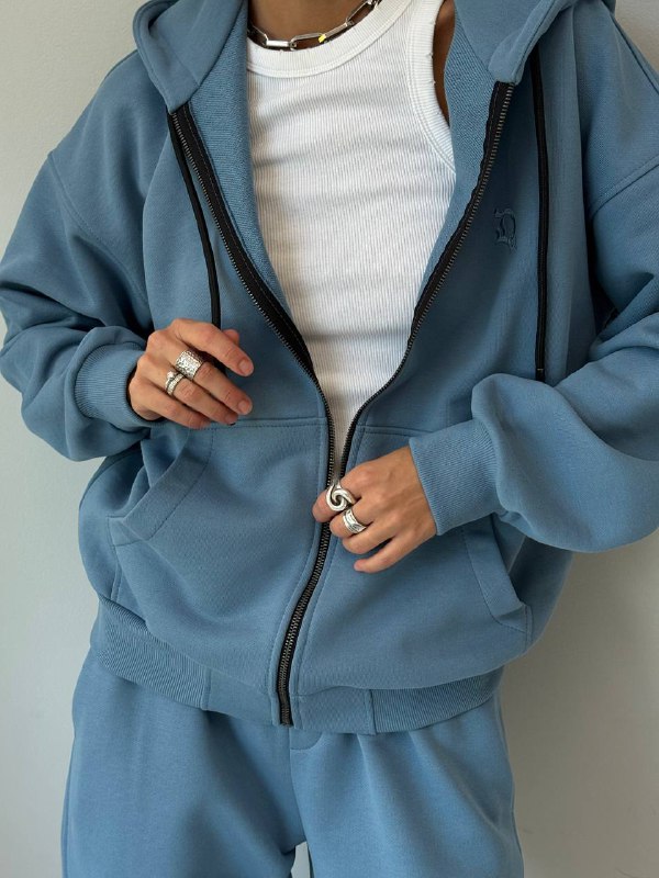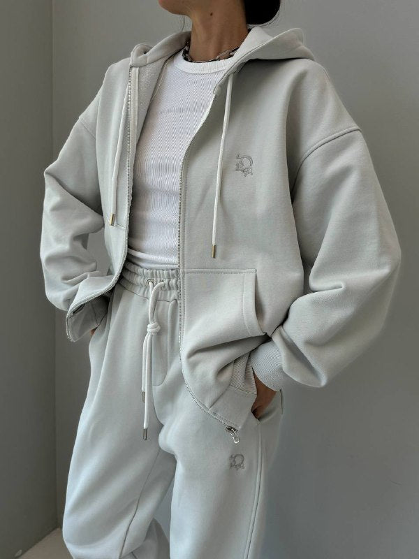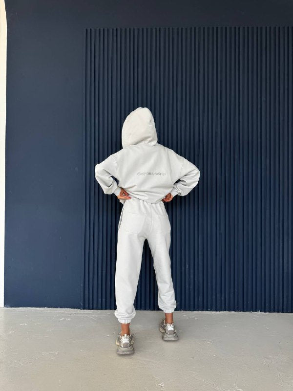 Set se skládá z praktické mikiny s kapucí a pohodlných joggerů.