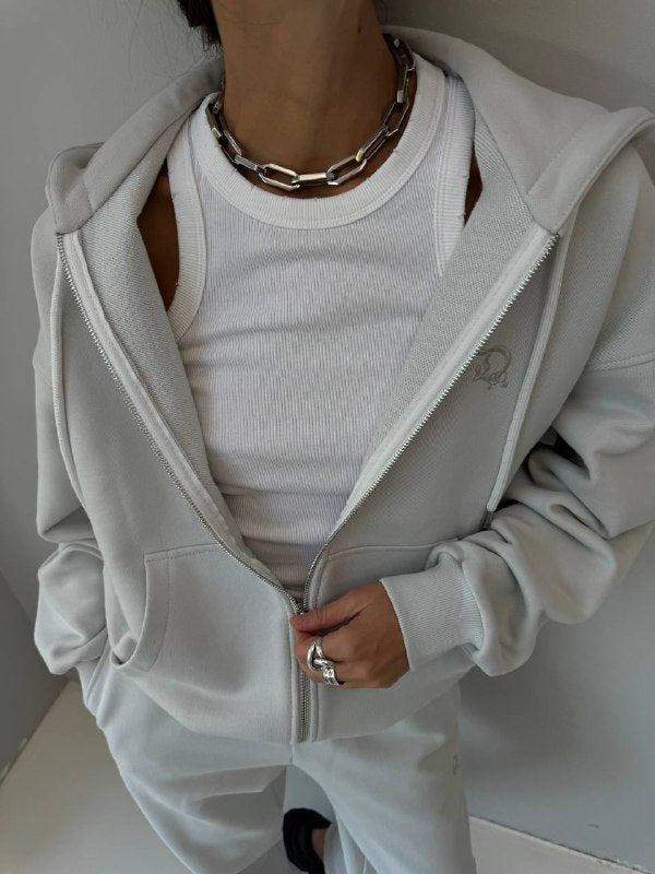 - Mikina na zip je doplněná stylovým detailem v podobě výšivky s nápisem na zádech a lohem ve předu.