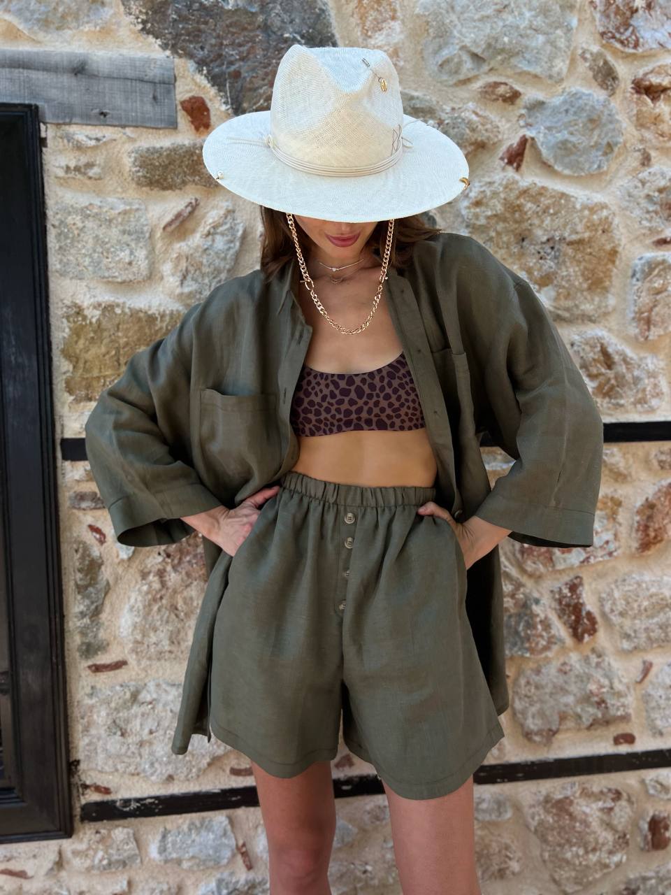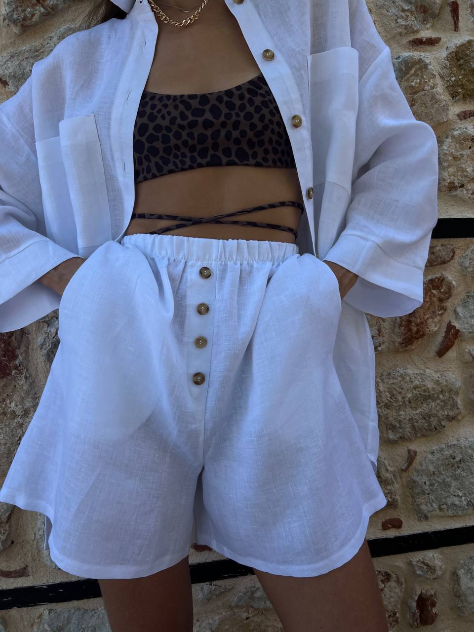 V pase mají šortky pružnou komfortní gumu, na přední straně ozdobné knoflíky.
