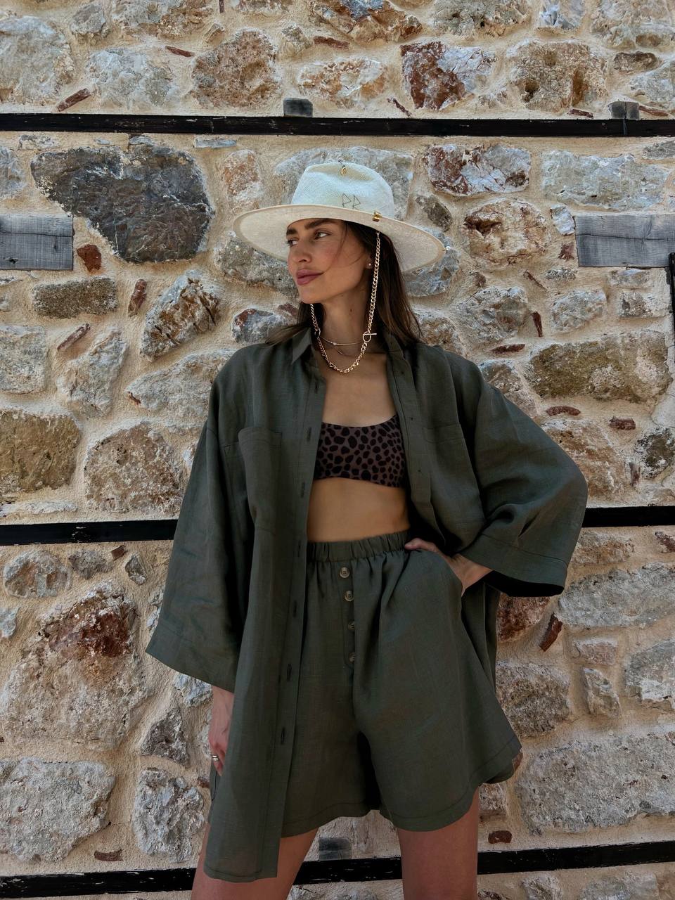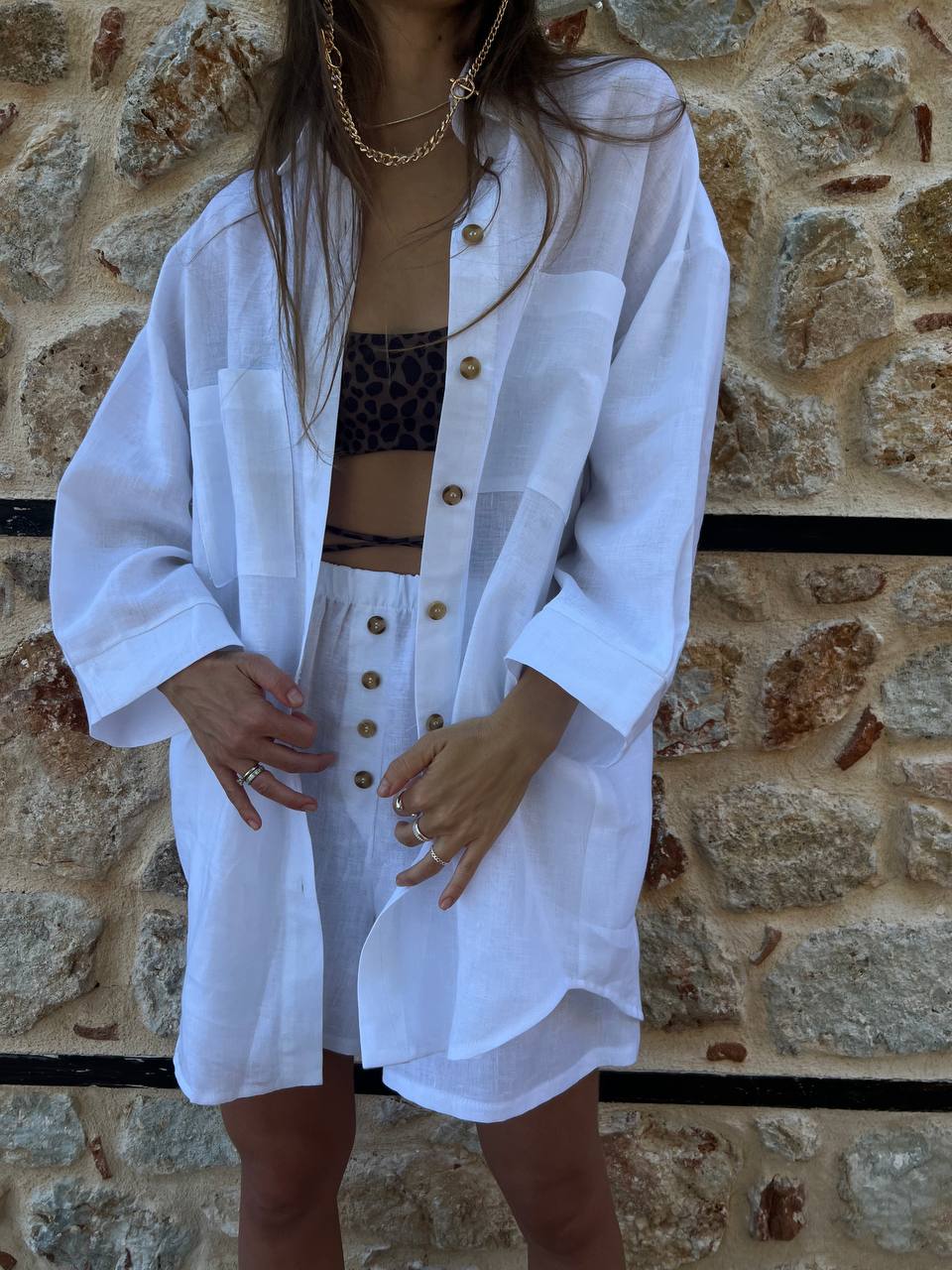 Košile s límečkem, zapíná se na knoflíčky, stejně jako funkční náprsní kapsou.