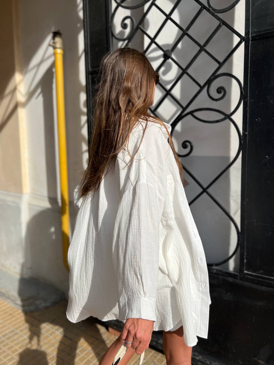 Košile s límečkem, zapíná se na knoflíčky, stejně jako funkční náprsní kapsou.