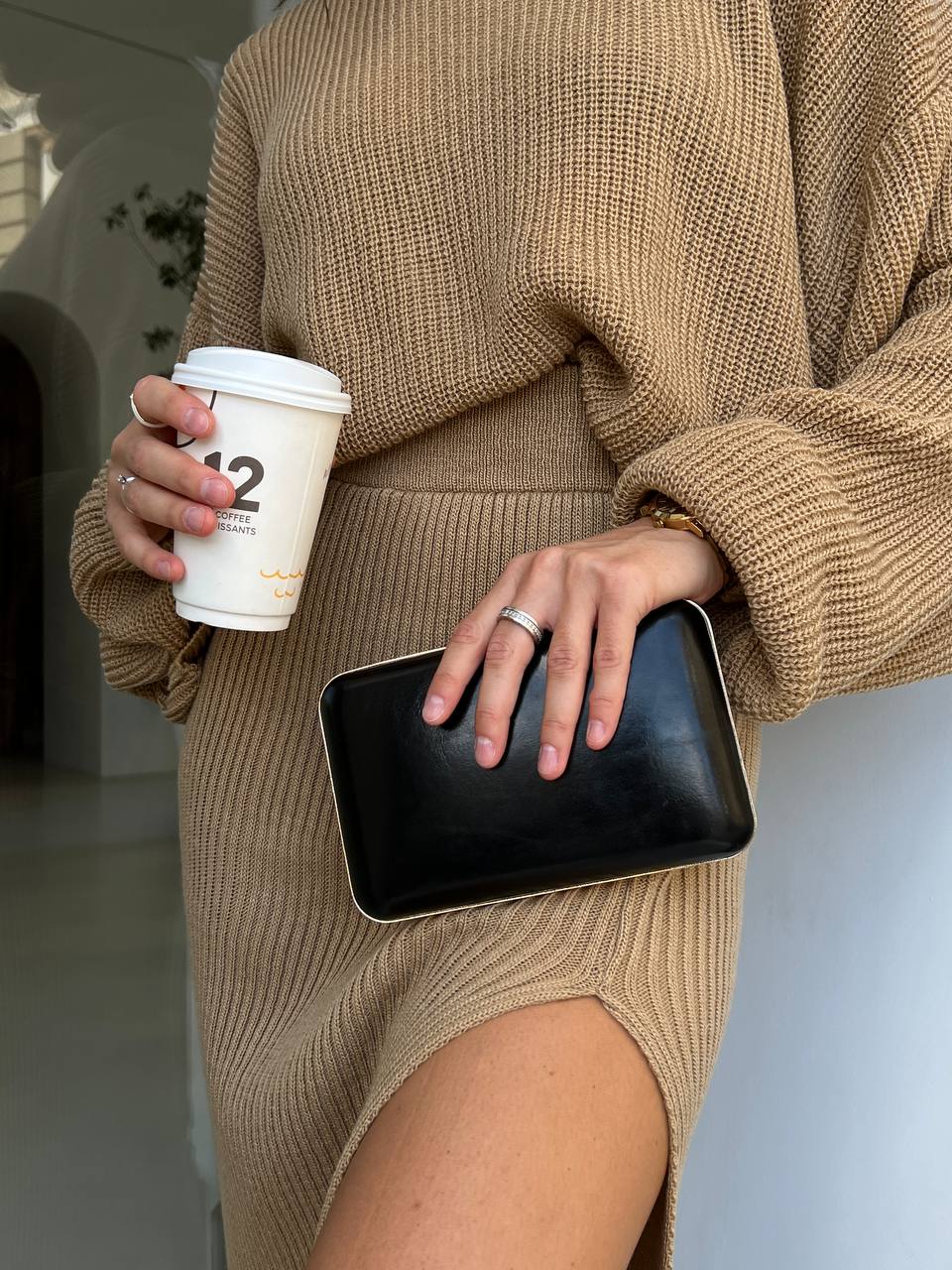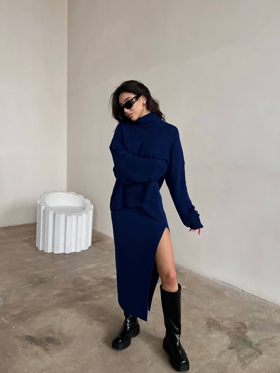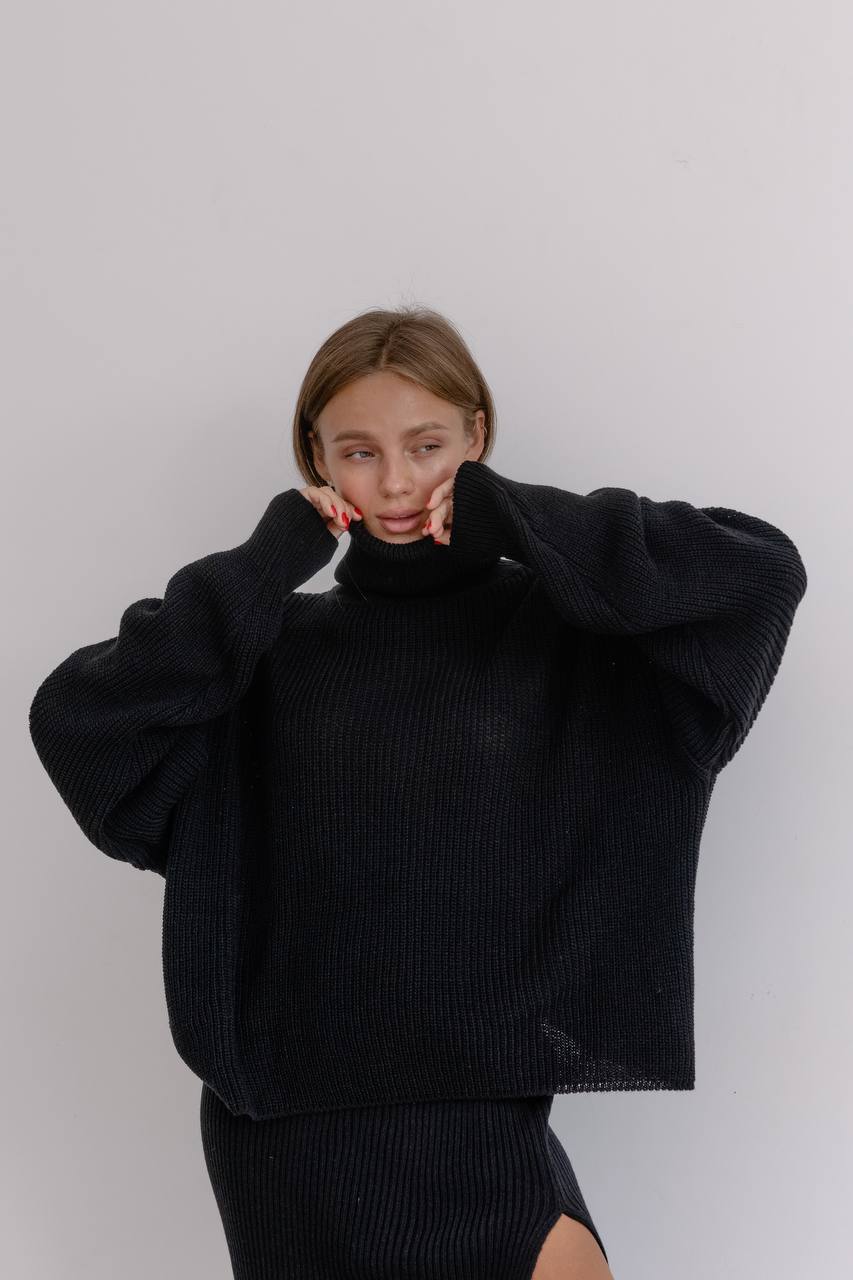 - Rafinovaná sukně s rozparkem podtrhuje ženskost, zatímco volný svetr vytváří příjemně ležérní dojem.