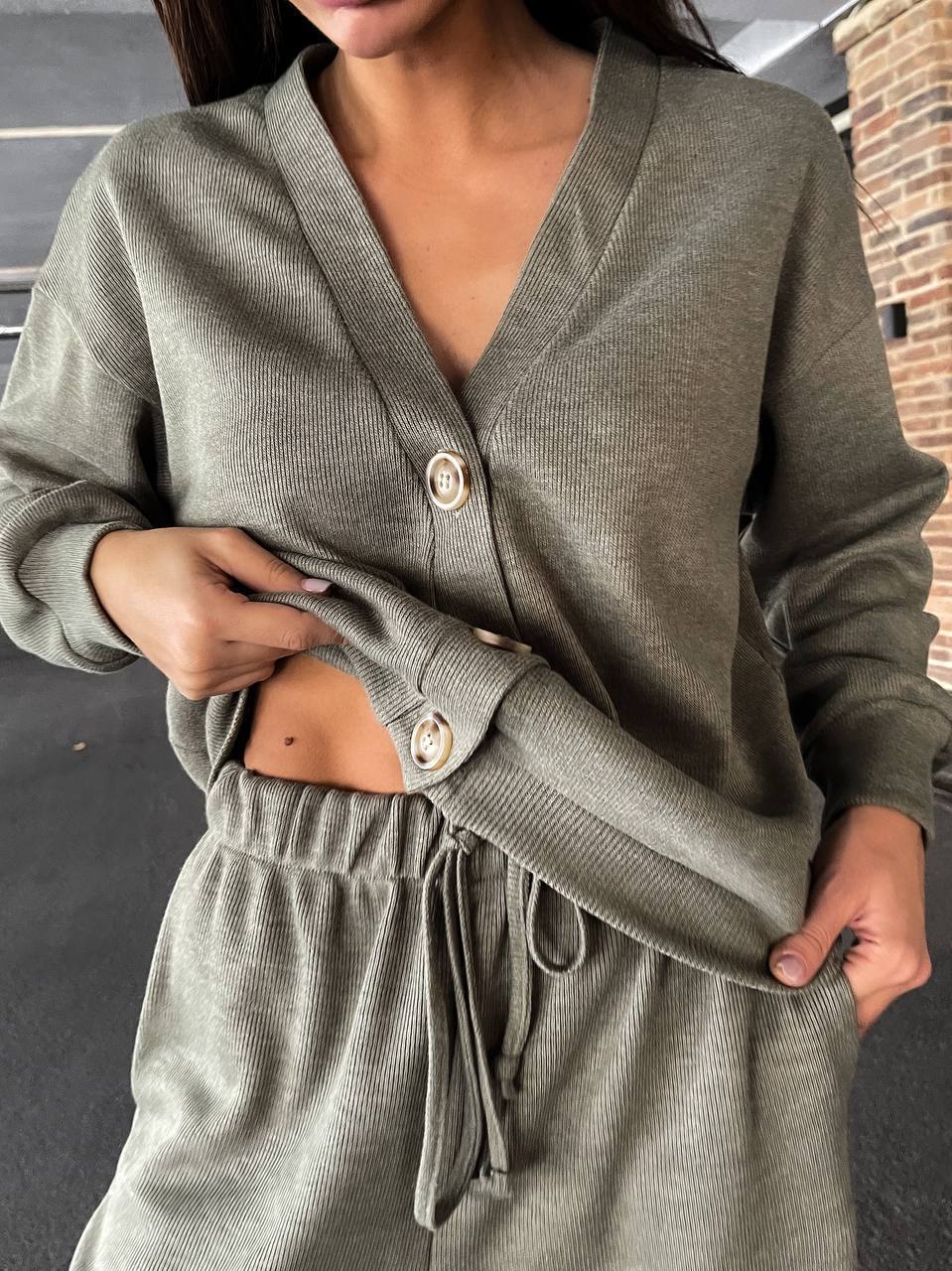 Tento set pohodlí domácího oblečení s elegancí vhodnou i pro příležitostné vycházky. Ideální volba pro ženy, které chtějí vypadat stylově, aniž by musely obětovat komfort. Dostupný v několika příjemných barvách pro snadnou kombinaci s dalšími kousky vašeho šatníku.